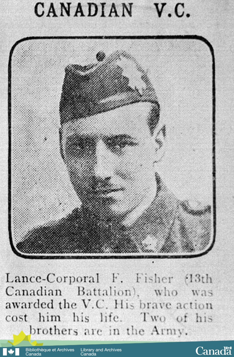 ![Coupure de journal d’une photographie à l’aspect granuleux du caporal suppléant Fisher accompagnée de la légende suivante : « Le caporal suppléant F. Fisher (13e Bataillon du Canada) qui a reçu la VC. Sa bravoure lui a coûté la vie. Deux de ses frères sont dans l’Armée » [TRADUCTION LIBRE].](https://ledecoublogue.com/wp-content/uploads/2015/04/a007079_br.jpg?w=584&h=891)
