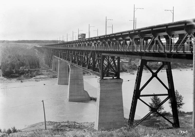 Le pont en contre-haut à Edmonton, par William Topley, 1914 (MIKAN 3587671)