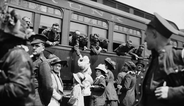 Pendant la Première Guerre mondiale, Boyd porte son attention sur le front intérieur; il photographie des campagnes de recrutement, des entraînements et les procédés de fabrication de munitions, d’avions et de navires. Il photographie également des Canadiens ordinaires qui contribuent à l’effort de guerre au pays pendant que les soldats se battent outre-mer. Les images ci‑dessous donnent un aperçu des activités de l’époque.