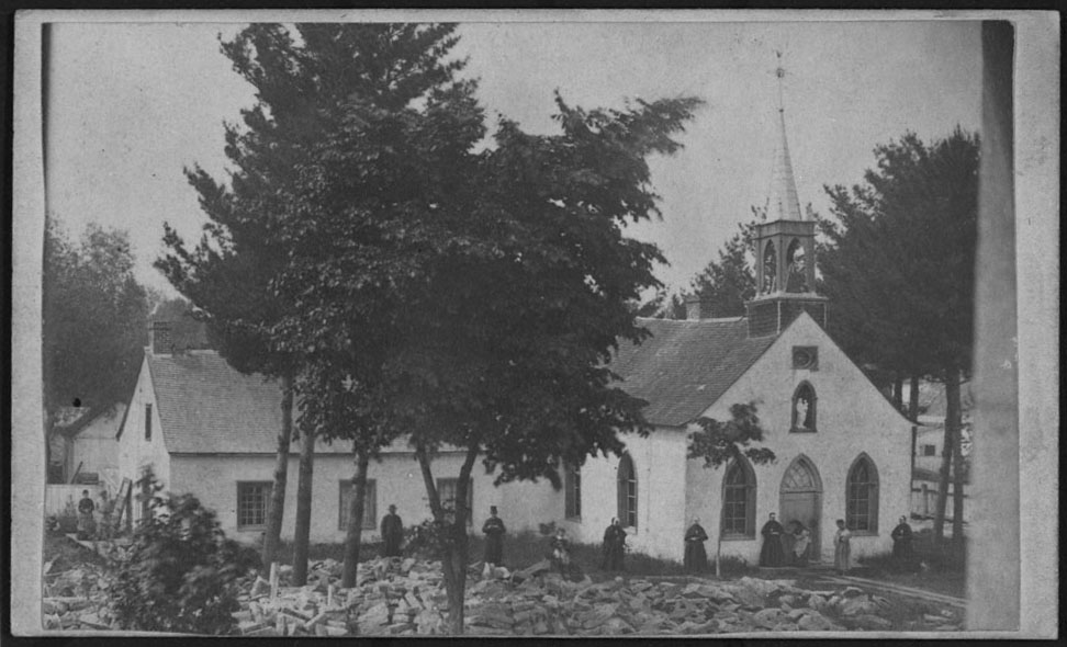 Photo de l’église Notre-Dame de Bonsecours, à Joliette, prise vers 1881, environ dix ans après que M. Perreault a été recensé. (MIKAN 3321968)