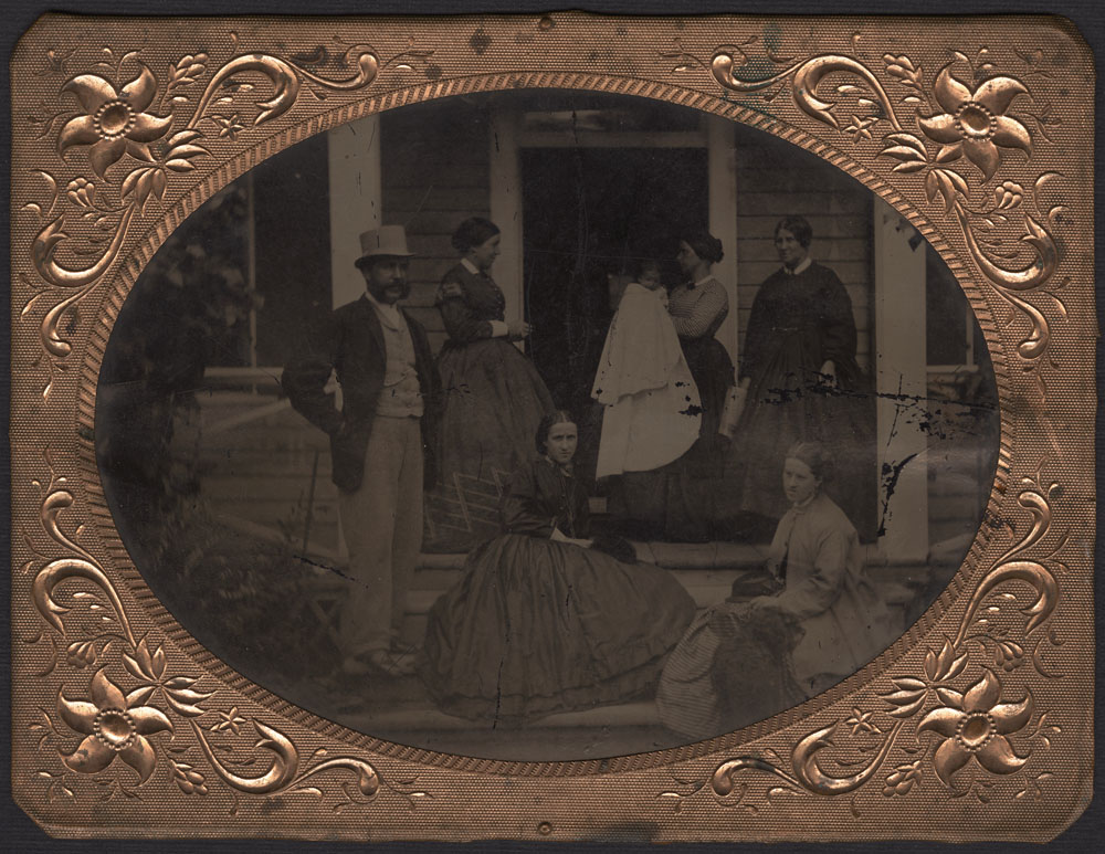 Image négative monochrome qui, formée sur une fine plaque de métal recouverte d’un vernis noir, apparaît comme un positif. Elle est souvent coloriée à la main. Les ferrotypes sont présentés dans des montages en papier leur permettant d’être glissés dans des albums; ils peuvent aussi être montés sous verre dans des écrins « américains ».