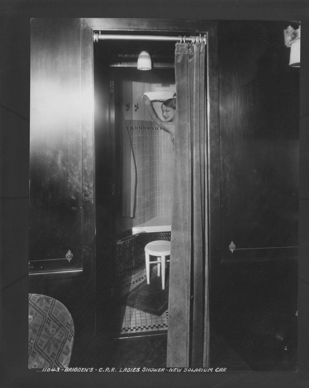 Douche pour femmes, Chemins de fer Canadien Pacifique, nouvelle voiture avec solarium. [MIKAN 3380569]