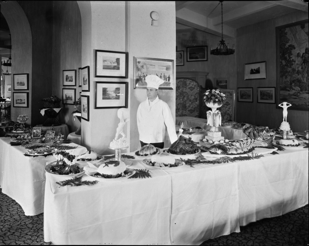 Buffet froid du soir au Manoir Richelieu, Canada Steamship Lines, Pointe-au-Pic (Québec) [MIKAN 3553254]