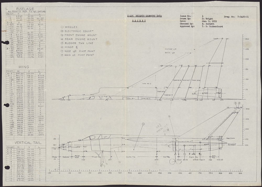 Dessin n° 7-0400-01, version n° 1 de l’Avro Arrow CF-105 (e011161348)
