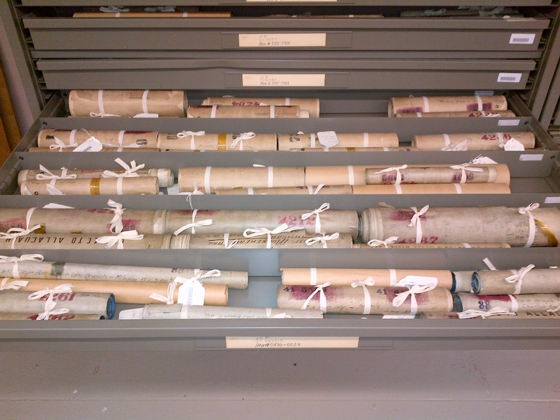 Après mon séjour aux Archives nationales d’Écosse, j’ai travaillé aux Archives de la Compagnie de la Baie d’Hudson, à Winnipeg. Là, j’ai appris que la Compagnie (dont le bureau principal se trouvait à Londres, en Angleterre, jusque dans les années 1970) se servait également de ruban rouge pour attacher ses dossiers.