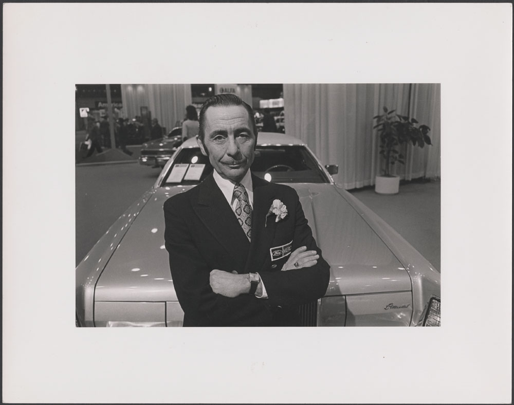 Vendeur chez Ford/Mercury, Salon de l’automobile, Place Bonaventure, Montréal, 1973. Photo : Gabor Szilasi (e011435663)