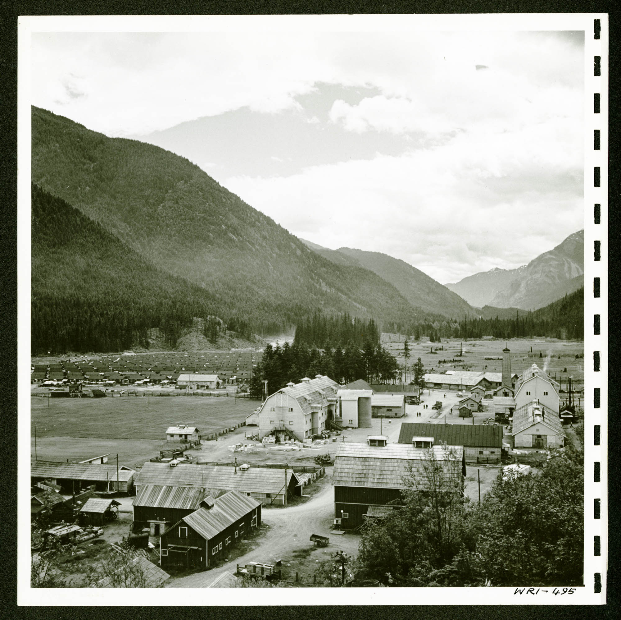 À Lemon Creek, en C.-B., les maisons des personnes évacuées sont assez espacées pour qu’elles y vivent confortablement et cultivent un potager. Dans chaque chalet vit une famille. [Baraques au camp d’internement de Lemon Creek, en C.-B.] Photo : Jack Long (e999900291)