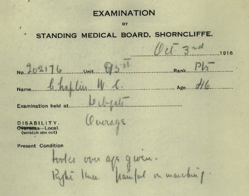 ![Fiche d’examen médical du Standing Medical Board [comité médical permanent] de Shorncliffe, tirée du dossier de service de William Charles Chaplin dans la base de données Dossiers du personnel de la Première Guerre mondiale.](https://ledecoublogue.com/wp-content/uploads/2021/08/pic8.jpg?w=584&h=461)