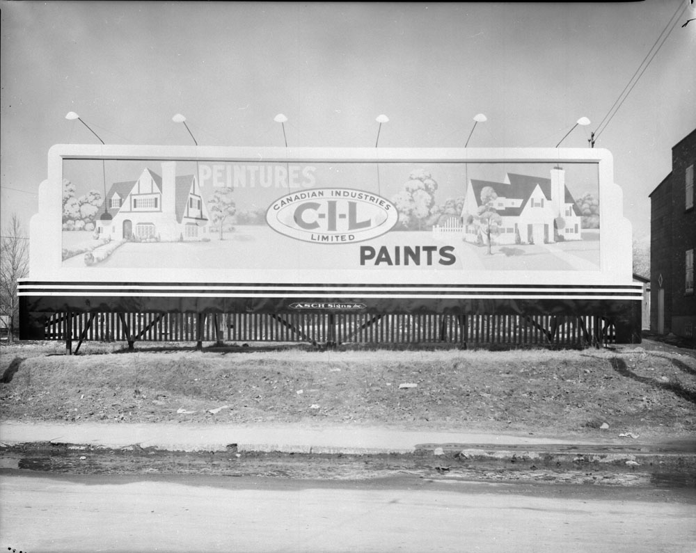 Panneau publicitaire de la compagnie CIL sur le boulevard Monkland, Ville LaSalle (Québec), vers 1950. (a069072)