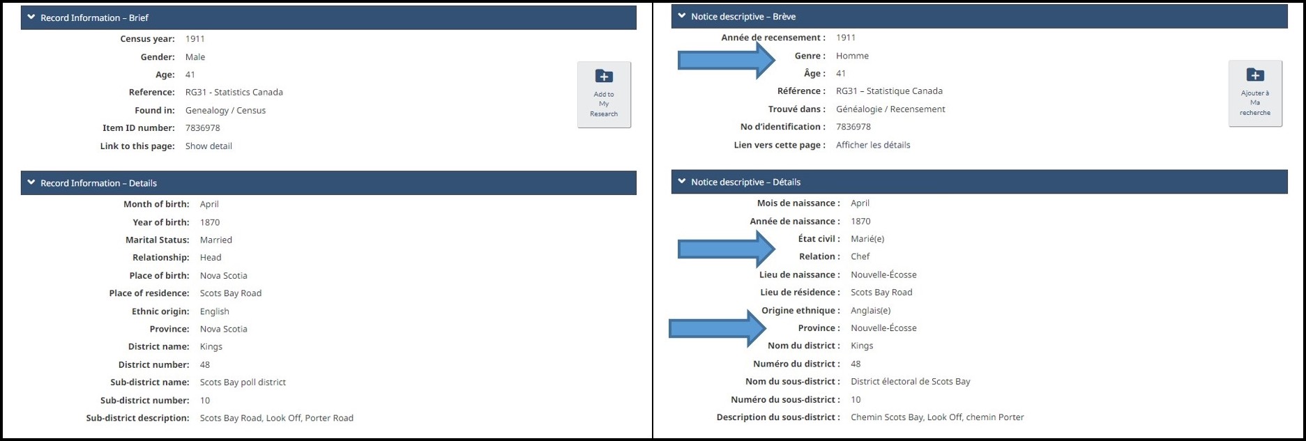 Le regroupement des 17 recensements en une seule et même plateforme, Recherche dans les recensements, nous a permis de créer un affichage bilingue pour nos données de recensement en nettoyant les données. Depuis son lancement, notre plateforme offre une expérience de recherche plus uniforme dans la langue de votre choix. Je vous encourage à l’essayer et à nous dire si votre expérience de recherche s’est améliorée.